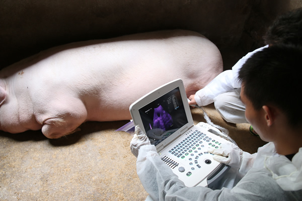 懷孕母豬還有一項特殊待遇,就是每個月做一次B超。